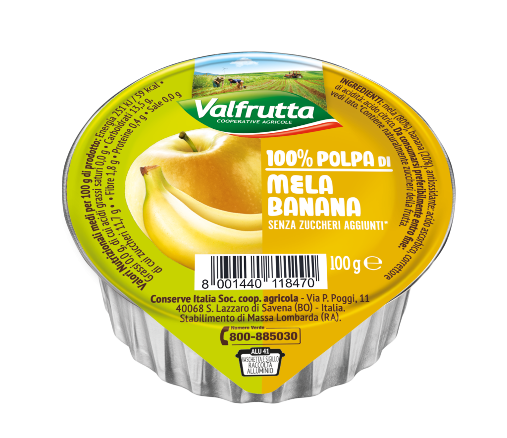 Una polpa di frutta dal sapore morbido, delicato e naturalmente zuccherino.