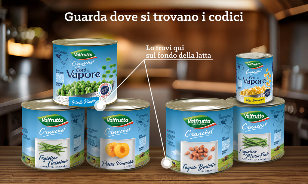 Grazie al codice presente sulle confezioni di Pesche in pezzi, di Piselli, di Borlotti, di Fagiolini e di Mais Valfrutta Granchef, potrai conoscere i coltivatori e il territorio di origine di questi prodotti.